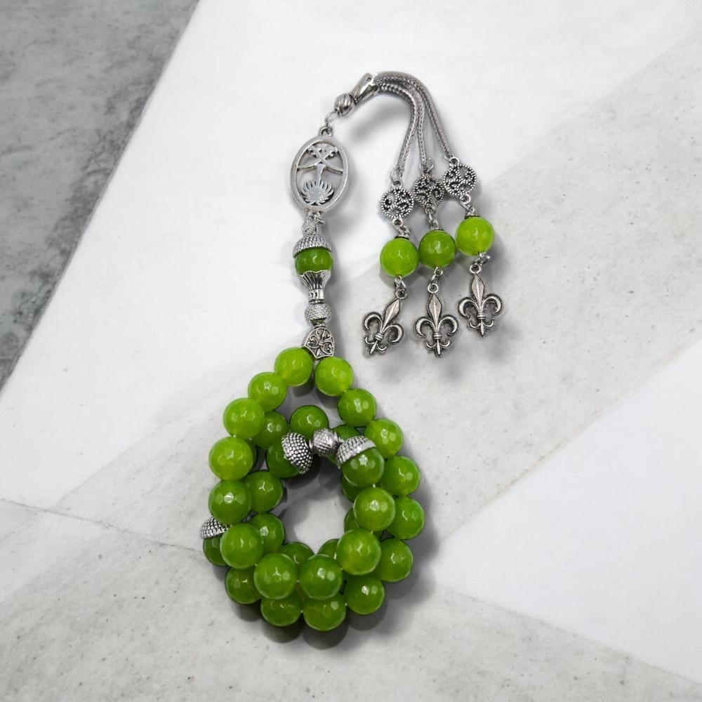 سبحة من حجر العقيق البرازيلي الأخضر الفاتح – بتفصيل فاخر من البانا
