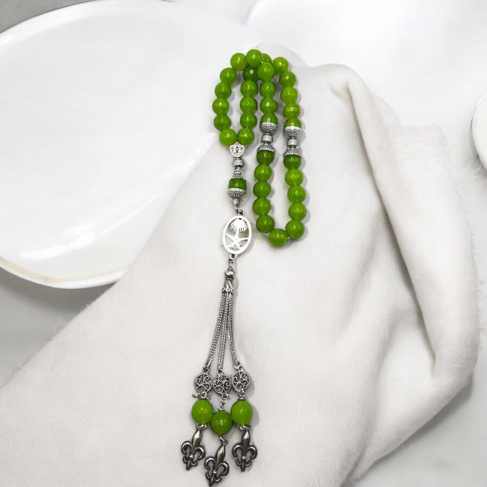سبحة مميزة من العقيق البرازيلي الأخضر الفاتح بلونه الهادئ الجذاب، مصممة بعناية لتجمع بين الفخامة والبساطة، بتفصيل دقيق يبرز جمال الحجر الطبيعي ويمنحك تجربة فريدة.