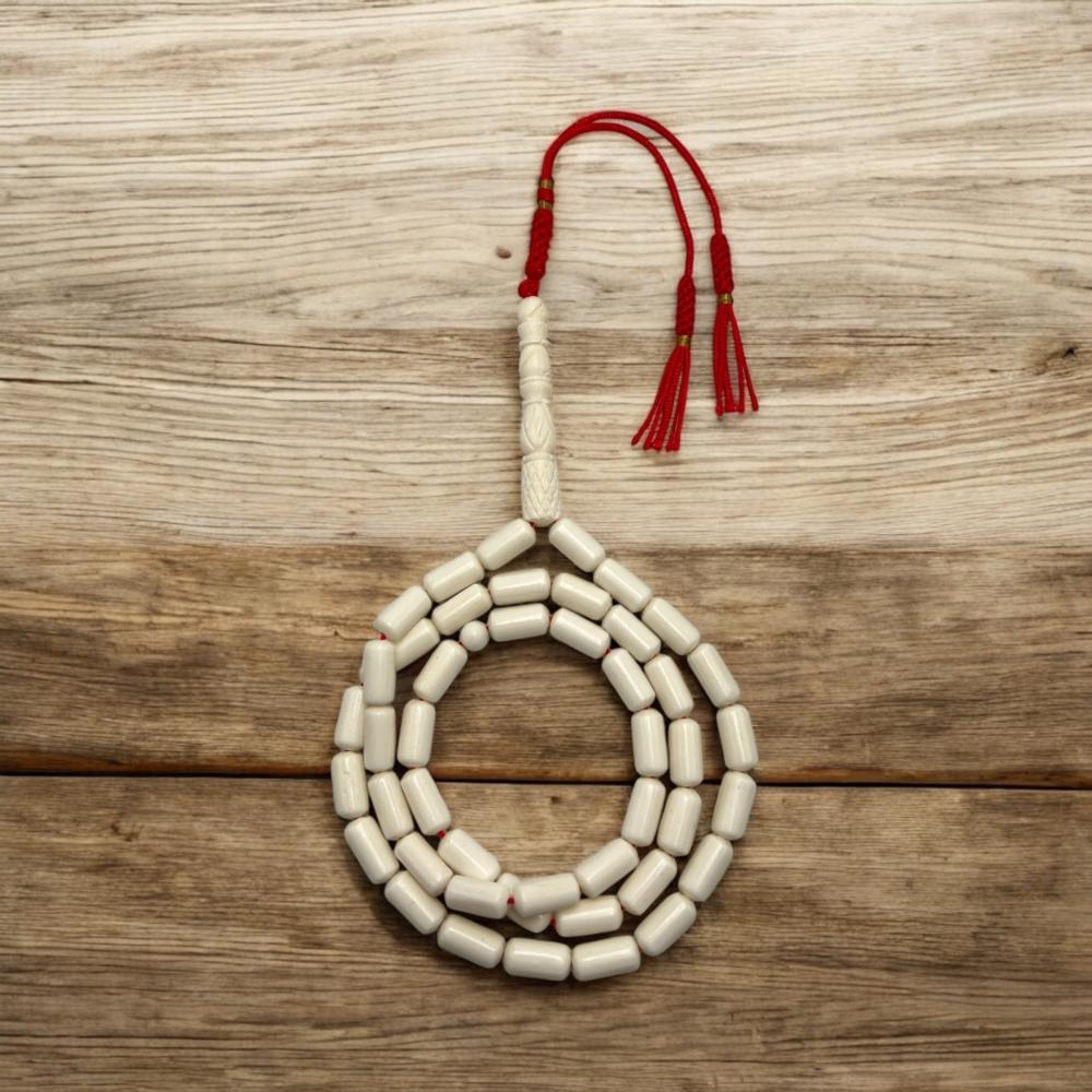 سبحة فريدة مصنوعة من عظم الجمل الطبيعي، بدقة عالية تعكس الحِرفية والتراث الأصيل. تصميم أنيق يجمع بين الروح الكلاسيكية واللمسة الفنية.