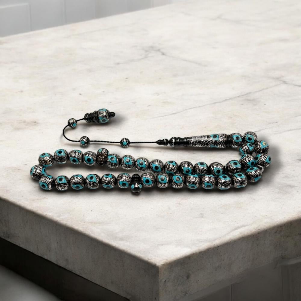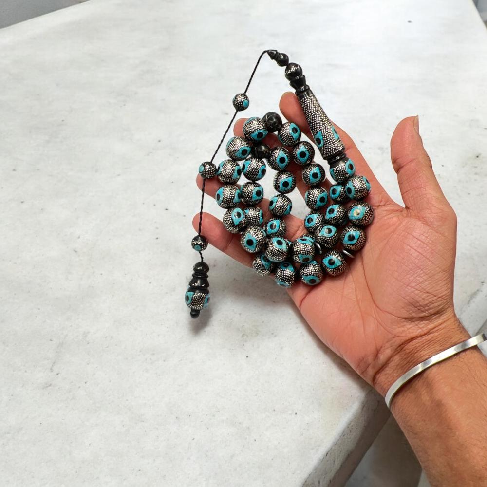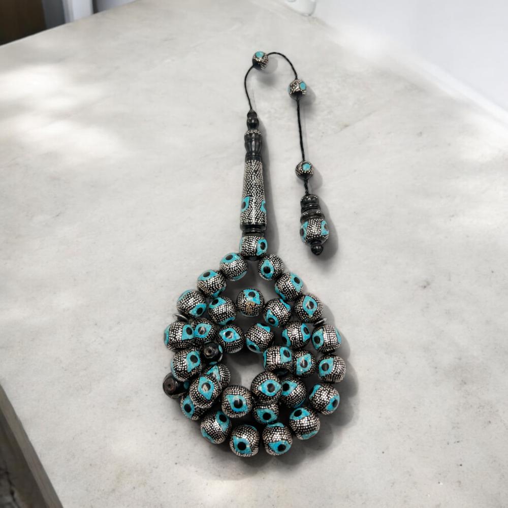 سبحة مميزة من اليسر بالفضة – مطعمة بالفيروز